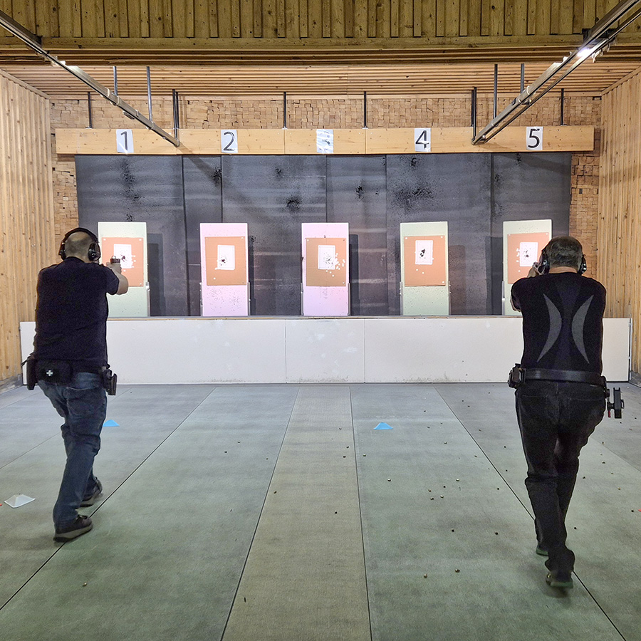 Kurze Wiederholung der Grundkenntnisse, Umgang mit der Ausrüstung, verschiedene Ziele, Schießen auf kurze Distanz, Magazinwechsel, einhändiges Schießen (rechts/links).