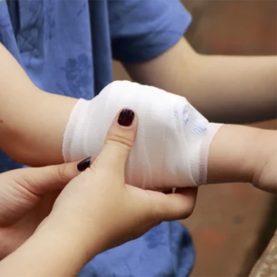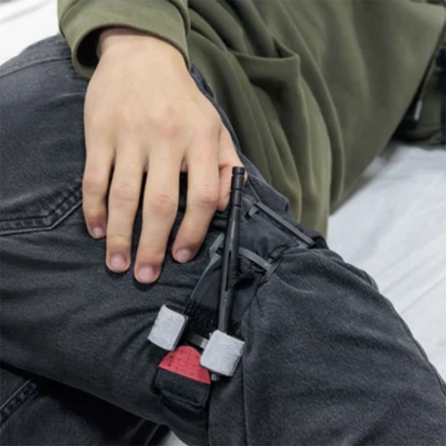 Verwendung moderner Erste-Hilfe Materialien, die über die herkömmlichen Erste-Hilfe Kästen hinausgehen und bei Militär oder Polizei benutzt werden.